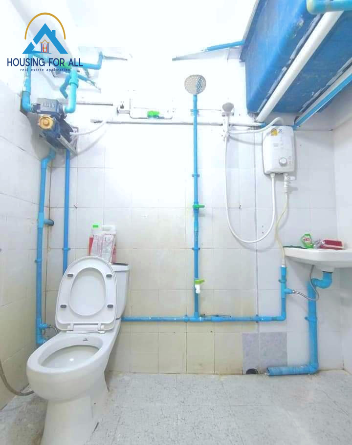 - ဝရံတာ မီိးဖိုခန်း ရေချိုးခန်း ဘိုထိုင် ကြွေပြားခင်း ကြွေပြားအပြည့် ကပ်ထားသည်