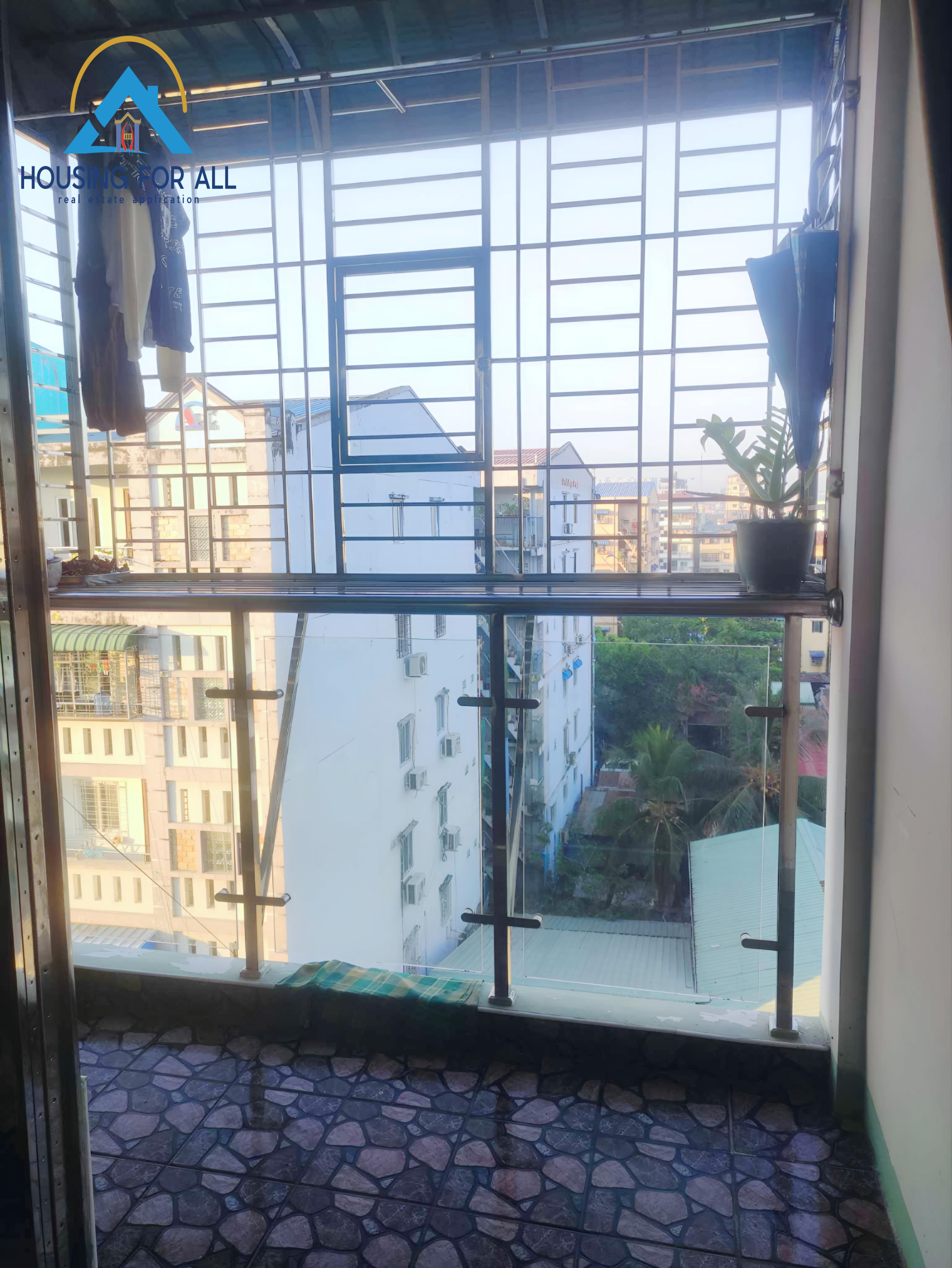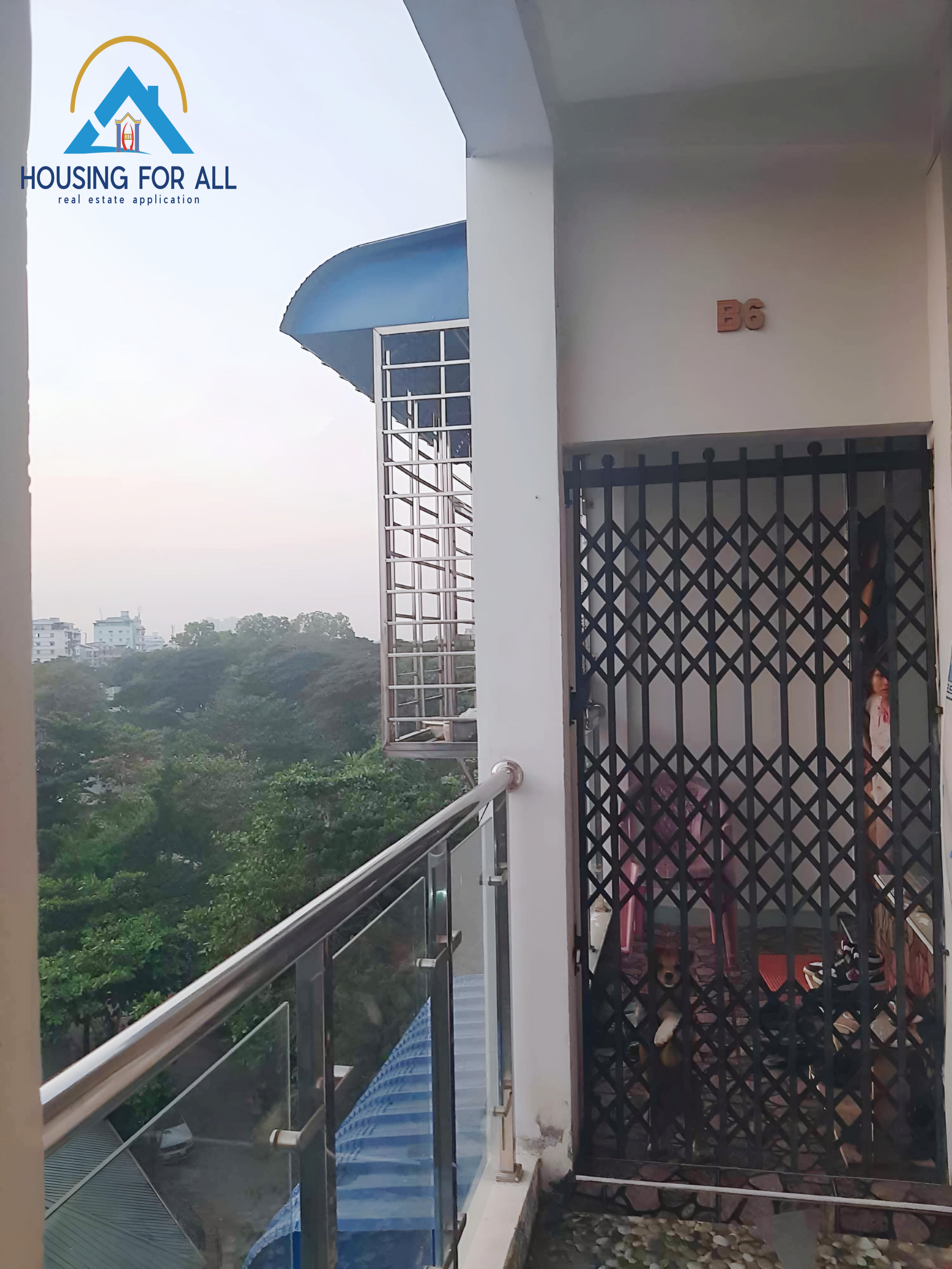 - ၀င်ပေါက် မှန်တံခါး သံပန်းနဲ့ ဆန်းရှိတ်တပ်ထား