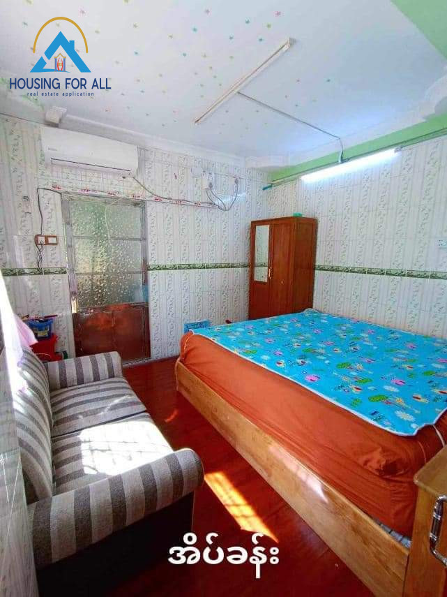 - အိပ်ခန်းကျယ်(1)ခန်း ဖွဲ့ထားပြီး ပြတင်းပေါက်နဲ့ ဝရံတာကို သံပန်း Sunshade တပ်ထားပါတယ်။