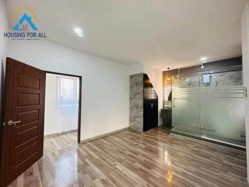 ဧည့်ခန်းကျယ်၊ ပါကေးခင်း၊မီးဖိုခန်း cabinet များတပ်ဆင်ထားပြီး၊ Includes Gas ,Oven & Stove for cooking ညော်စုပ်စက်၊water heater(2)လုံး၊ A.C (3) လုံး၊နံရံကပ် cabinet များ၊နံရံကပ်ဘီဒို၊ လိုက်ကာတပ်ဆင်ထားပါတယ်။