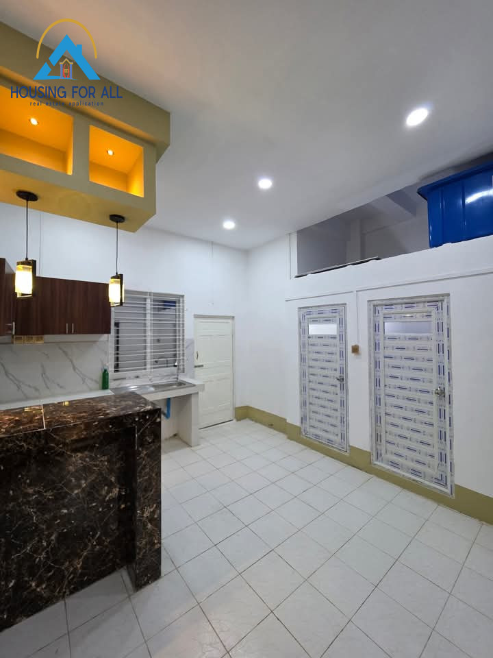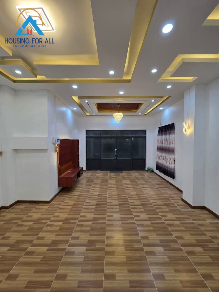 - ဧည့်ခန်းကို Eco Wood Celling နဲ့ ပြုလုပ်ပေးထားပြီး TV Backdrop / Bsr Counter / Cabinet / Pressure Pump /ပစ္စည်းထားဖို့ သိုလှောင်ခန်းလည်း ပါပါတယ်