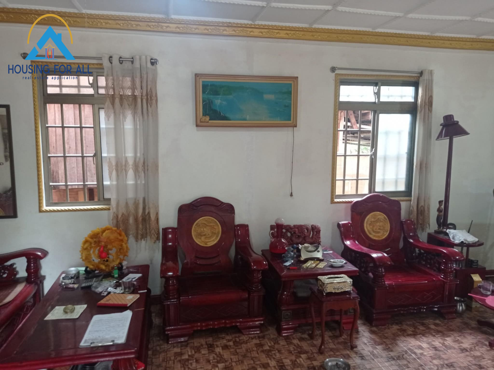- အပေါ်ထပ်က လိုင်းခန်း (5)ခန်း ပါပြီး ကြွေပြားအပြည့်ခင်းထားသည် မျက်နှာကြပ်ရှယ်ပြင်ပြီးကပ်ထား၊လိုင်းခန်း(5)ခန်းကို အုတ်နံရံကာပြီး၊လိုင်းခန်းဝရံတာကြွေပြားခင်းထား